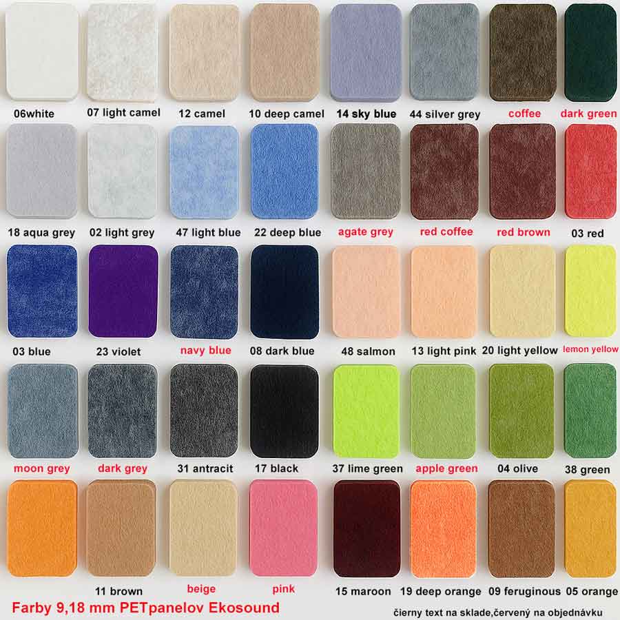 Farby PET panelov Ekosound Hard 9mm