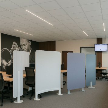 Mobilné paravany umožňujú rýchlo vytvoriť pokojný priestor aj uprostred rušnej kancelárie. Tlmia hluk, znižujú ozvenu a zlepšujú zrozumiteľnosť reči.
