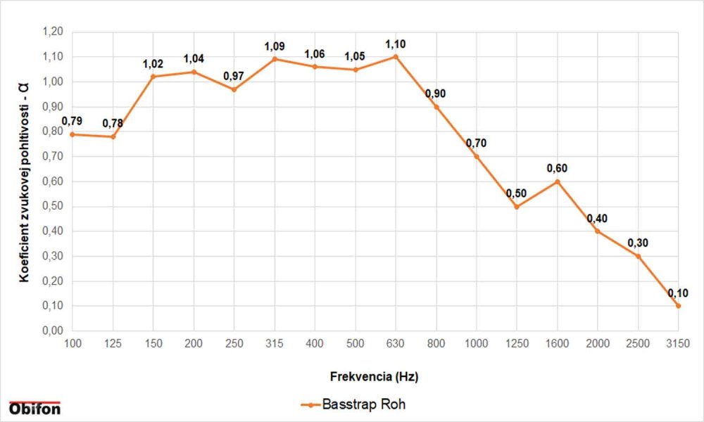 Akustické vlastnosti panelu Basstrap Roh alfa w = 1